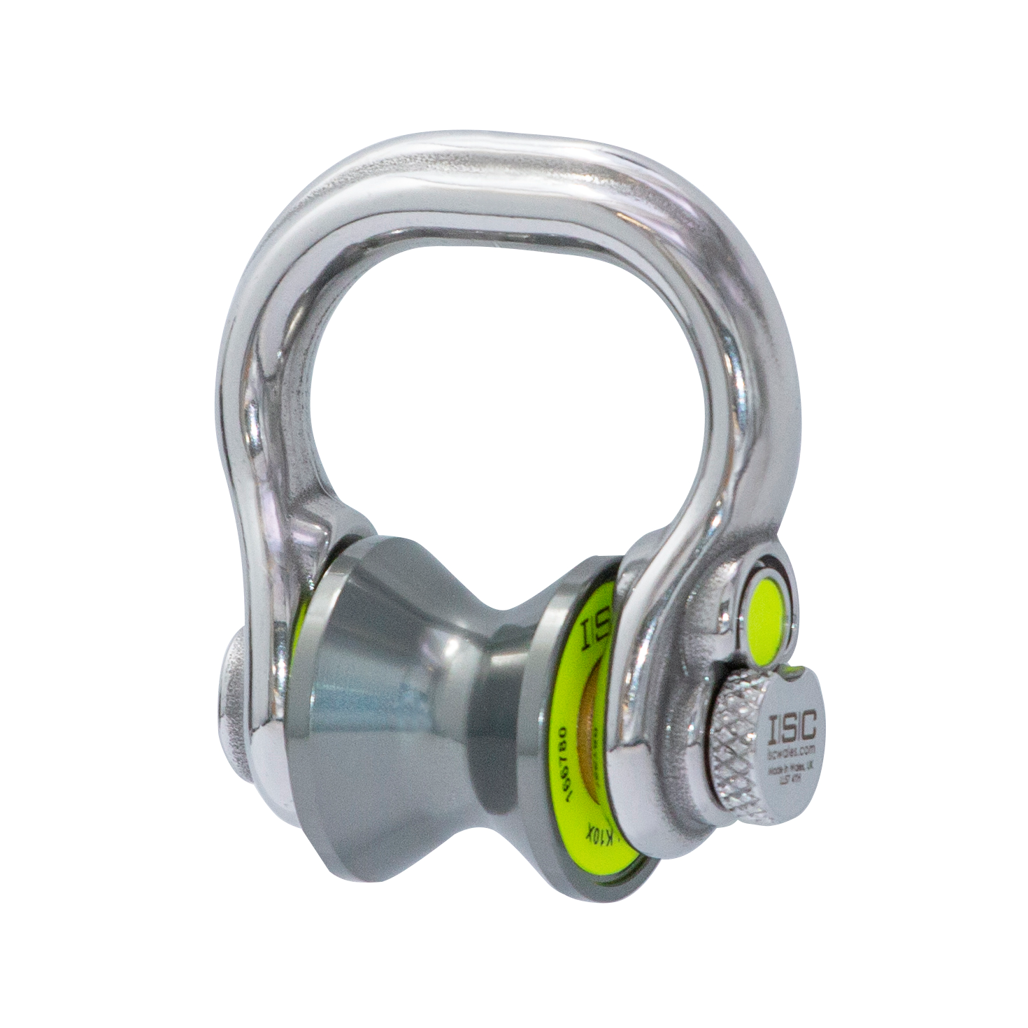 In der geöffneten Position wird der Achsenkopf im Gelenkkörper gehalten, um zu verhindern, dass er versehentlich fallen gelassen wird. Die Achse wird zurückgezogen, um die gesamte Breite des Glieds zu öffnen und das Laden von Seil(en) und Seilscheibe zu erleichtern.